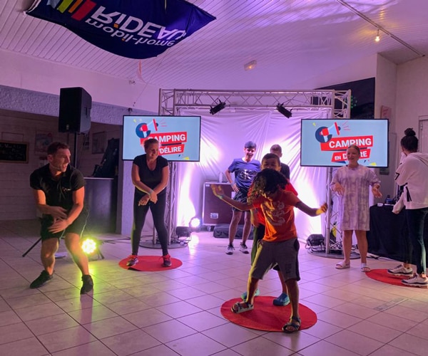 Notre équipe vous propose une animation originale autour de mini-jeux dans une ambiance plateau télé, recréé au sein de votre camping. Plusieurs équipes s’affrontent dans une compétition fun inspirée d’émissions de télévision. L’objectif… gagner un maximum de points pour faire atteindre son équipe à la grande finale.